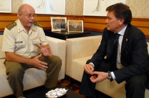 En la mañana de hoy el Presidente de la Diputación, Francisco Vázquez, ha mantenido un encuentro con el Coronel Director de la Biblioteca de Ciencia y Artillería, Adolfo Cristobal, para abordar diferentes aspectos de colaboración entre ambas institucionales.